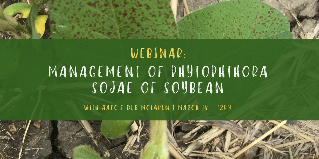 Join Dr. Debra McLaren, Crop Production Pathologist, Brandon Research and Development Centre with Agriculture and Agri-Food Canada, as she discusses Phytophthora sojae and how it affects soybeans. Attendees will hear more about Phytophthora sojae in Canadian soybean fields, types of host resistance, pathotype diversity, best management practices, and more. This webinar is co-hosted by Alberta Pulse Growers, Saskatchewan Pulse Growers, Manitoba Pulse & Soybean Growers, and is funded through AAFC’s AgriScience Clusters Program.