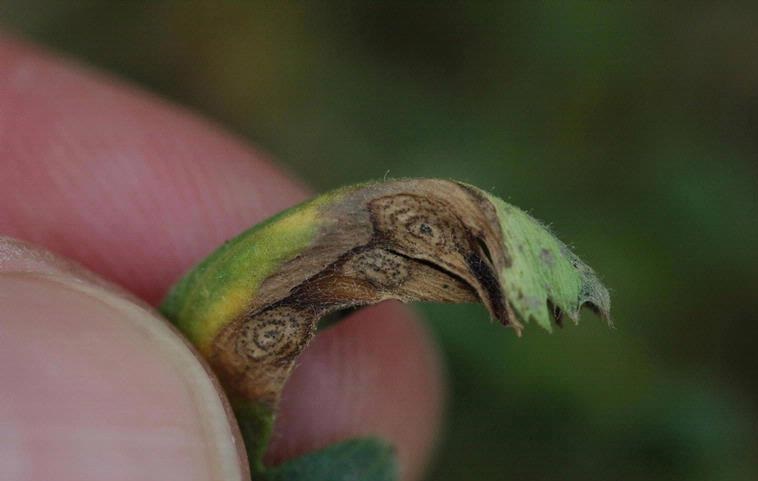 Ascochyta Blight on Chickpea Leaf close up, Photo Credit: Bugwood.org