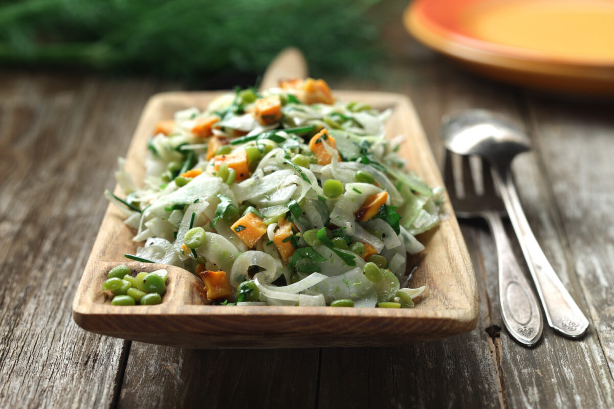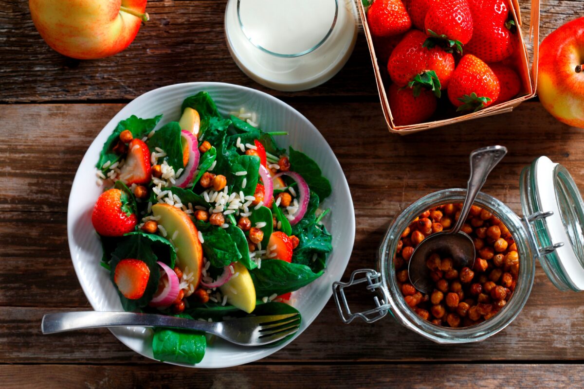 This sweet yet savoury salad with marinated chickpeas is the perfect addition to any summer barbecue! This salad also works as an entrée at lunch or supper.