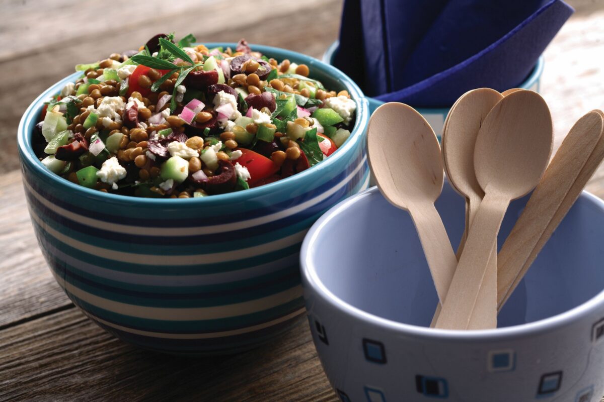 Flavourful lentils give this dish a bit more substance for a healthy meal-sized Greek salad.