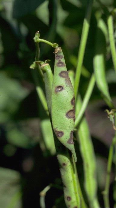 Halo Blight on Dry Bean pod, Photo Credit: Howard F. Schwartz, Colorado State University, Bugwood.org
