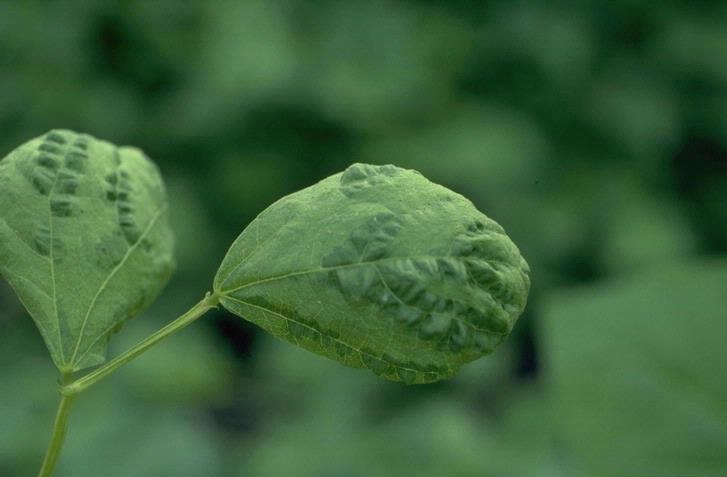 Bean Common Mosiac Virus Leaf, Photo Credit: Howard F. Schwartz Colorado State University, Bugwood.org