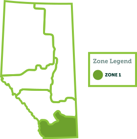 Dry bean production occurs predominantly in Zone 1 in the irrigated fields of Southern Alberta surrounding Bow Island, Taber and Vauxhall.