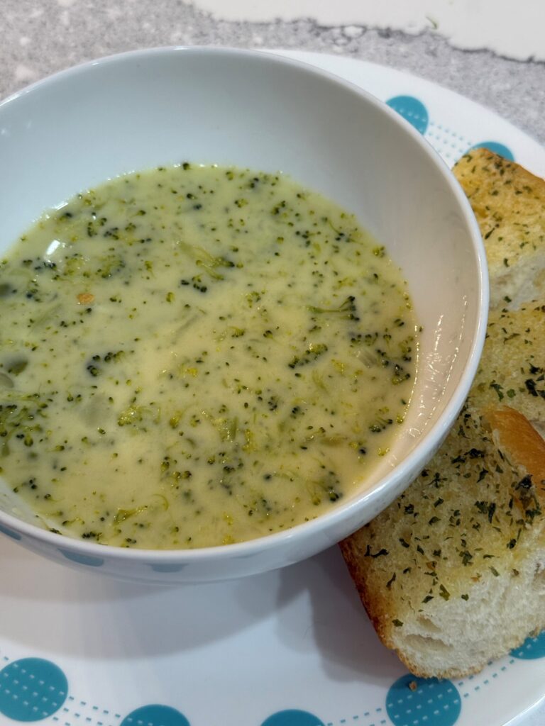 Bring the broth to a low boil, then add broccoli and split peas. Lower heat, cover, and simmer for 25-35 minutes, or until split peas are tender, stirring occasionally.