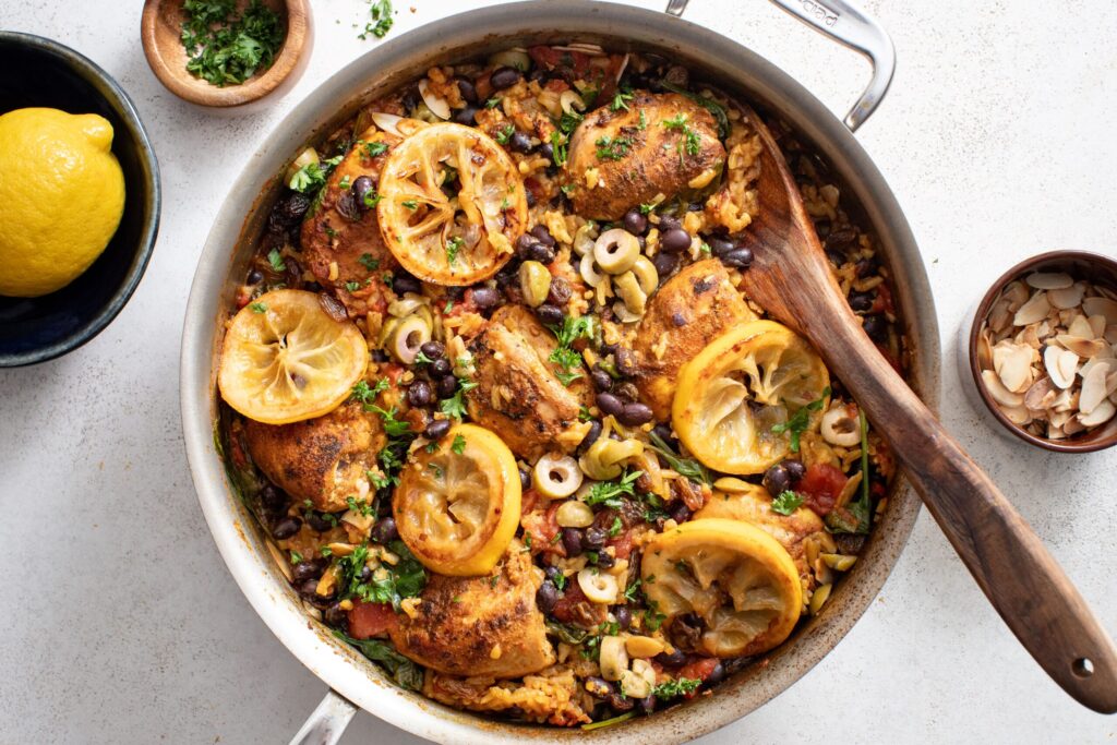 Heat a large skillet with a lid over high heat. Add oil and swirl to coat the bottom. Place lemon slices in the pan in a single layer and cook for 2-3 minutes before flipping and cooking for another 2-3 minutes, or until golden and caramelized. Remove from skillet to a plate and set aside.