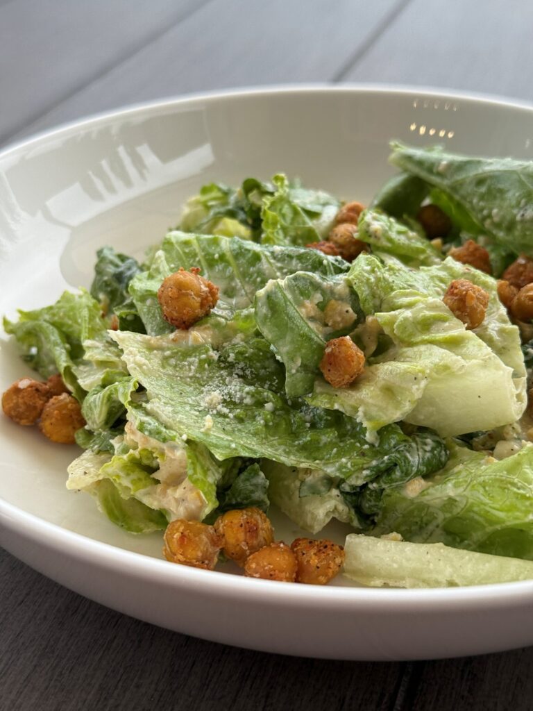 This is a fun twist on the traditional Caesar salad with chickpea croutons and chickpeas in the dressing! Chickpeas add protein & fibre to this delicious dish.