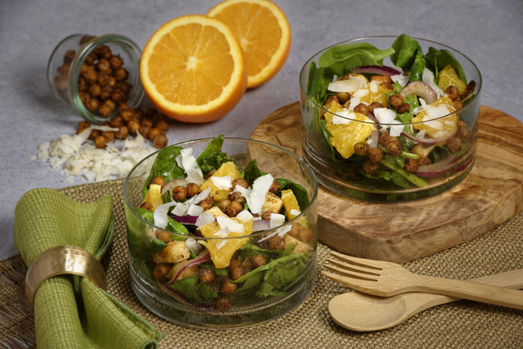 Chickpeas, Paneer and spices are a classic combination in this East Indian inspired vegetarian Salad.
