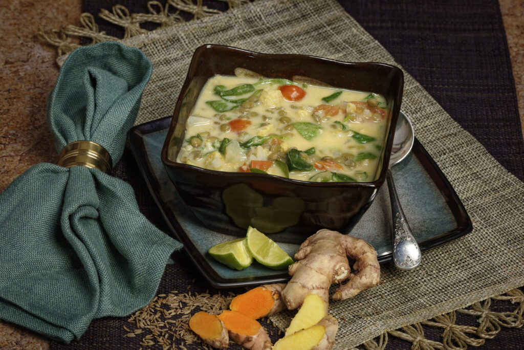Add cauliflower, water, broth and simmer for 20-25 minutes until lentils are soft.