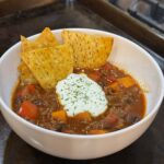This chili is hearty, slightly sweet, smoky, and full of flavour. Make it your own with your favourite ground protein to partner with the black beans. As an added bonus, we've included the recipes to make your own tortilla chips and lime crema to serve with this yummy chili!