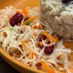 This simple, vinegar-based salad provides a refreshing, crunchy contrast to the rich Rice and Peas.