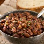 When beans are tender, drain then add to prepared sauce in oven proof pot, ensuring beans are covered by the sauce. If not, add water or stock until beans are covered. Cover and bake in preheated oven for 4 hours or until the beans reach desired consistency, stirring occasionally. Add water or stock if more moisture is needed. Season to taste with salt and pepper, stir in the fresh thyme and serve!