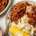If you don't have any bacon on hand, you can use canned beans with pork instead of beans in tomato sauce. Skip step 2 of the recipe and combine all ingredients in a bean pot or baking dish as per the recipe!